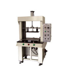 本設備采用滑板式結構,由電加熱方法將加熱板熱量傳遞給塑料加熱件的熔接面。使其表面熔化,然后在氣缸的壓力下,在鉚柱上部形成鉚合點。熔接時間到達以后上模回到原位,滑板退回原位完成焊機,塑料件自然冷卻、合為一體。整機為框架形式,由上模板、熱模、滑板三大塊板組成,動作方式為氣動控制。